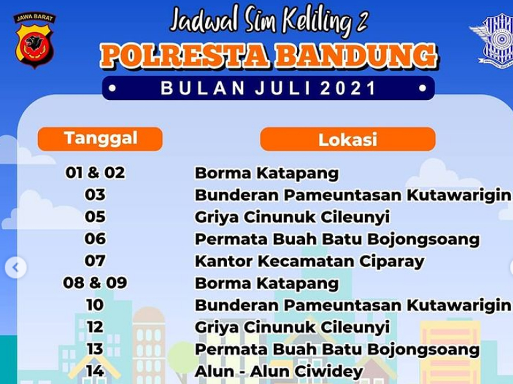 Jadwal Layanan SIM Keliling Polresta Bandung Bulan Juli 2021